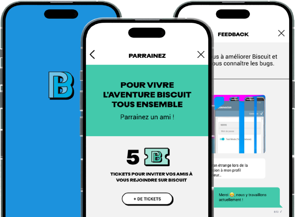 Biscuit© est en cours de développement, pour préparer au mieux la version officielle nous avons besoin de votre aide pour tester et améliorer l’application. Si vous êtes intéressé(e) pour devenir bêta-testeur.euse, inscrivez-vous !